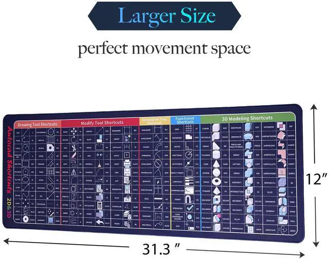 Upgrade your desk with the CAD Shortcuts XL Mouse Pad more than a mouse pad, its a productivity tool. Measuring 31.5" 11.8", it provides ample space for your keyboard, mouse, and notes.