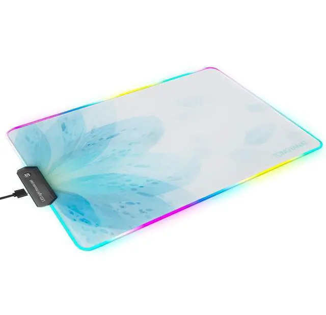 Perfect for gamers who demand both performance and aesthetics, this illuminated glass mouse pad serves as both a practical peripheral and an attractive desk accessory.