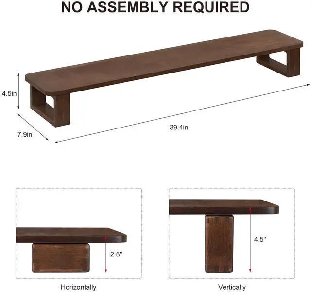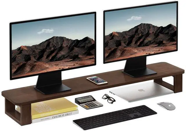 STURDY & STRONG BEARING CAPACITY: This long dual monitor stand made of high quality rubber wood, smooth and thick workmanship, unique construction makes it have strong bearing capacity (support up to 220LBS)