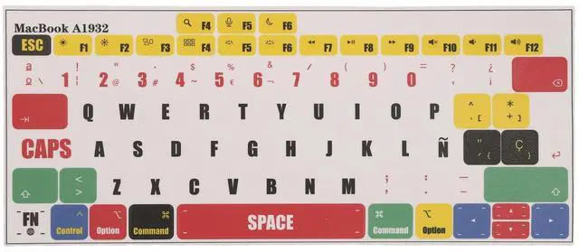 DURABLE DESIGN: Vinyl-treated decals for long-lasting colour brilliance, helping to prevent fading over time Scope of Delivery 1x QWERTY ES Spanish Keyboard Stickers Compatible with Apple MacBook Air 13" 2018 2019 2020 A1932
