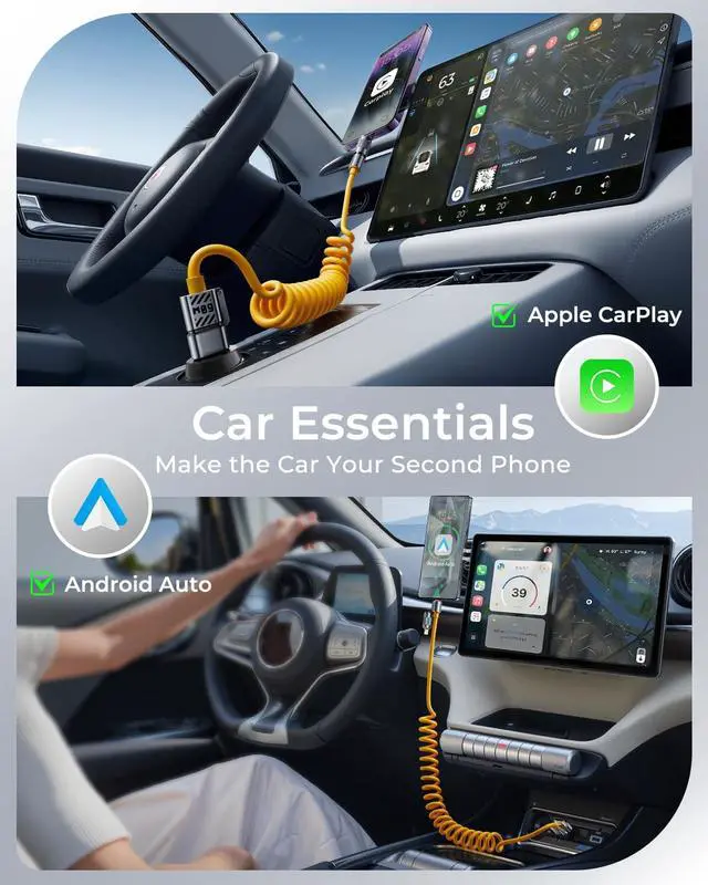 It offers four versatile combinations: USB-C to USB-C, USB-C to L, USB-A to USB-C, and USB-A to L. Never worry about having the right cord again it's all in one convenient cable! ^^ [Coiled Cable Made for Car] The coiled usb c cable made with highly elastic TPU material is specially designed for cars. The stretch length can be up to 5ft Max, comfortable stretch length (3 ft-4 ft), and bounce back to normal length( 1.3 ft- 1.6 ft). It can be easily charged and played in the back row of the car. It also can be stored with just a flick, without getting knotted or tangled, making the car tidier. ^^ [60W Fast Charging & Data Sync] The 60W coiled iphone charger fast charging offers fast, efficient charging at home, in the office, or on the go. It has adopted a new high-purity thicker copper core, the conduction efficiency has reached a new high. Easy surpass the official, ultra-low resistance charging faster, charge 85% in 30 minutes/transfer 1G large files in 25 seconds. ^^ [CarPlay & Android Auto Support] The usb c cable coiled is a novel idea with changeable ends that works for Android Auto and Carplay.