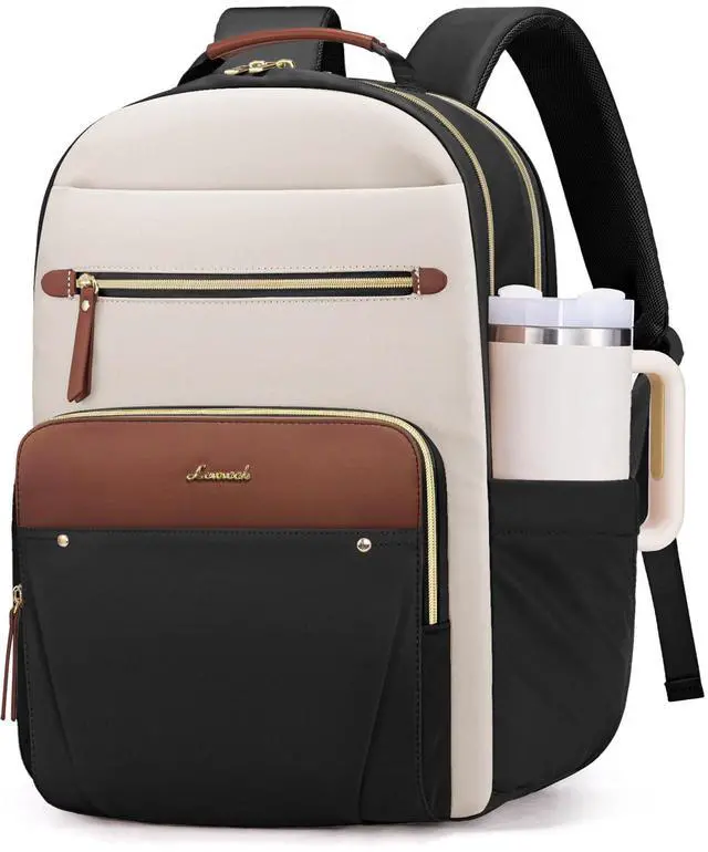 ^^ Independent Laptop LayerThis work backpack has a dedicated, cushioned compartment, offering nice protection for your laptop up to 17.3". Equipped with 4mm extra-thick padding, it safeguards your gadgets against bumps and falls. ^^ Travel-Friendly Features for EaseIdeal for the traveler, this women backpack features a hidden zip pocket for safeguarding passports and valuables. The luggage strap allows easy attachment to your suitcase, simplifying your journey. ^^ Comfortable & Durable MaterialEnjoy comfort with thick shoulder straps and back padding, specifically designed to alleviate shoulder and back pressure. Made from high-density, water-resistant material, this backpack is built to withstand daily wear, ensuring your belongings stay secure and dry.