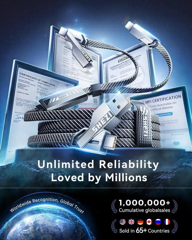 The military-grade nylon braiding material can bear a weight of 20kg, is flexible, and does not tangle ^^ [Universal Compatibility] SHEZI 6 in 1 multi charging cable is compatible with virtually all usb-c devices including phones, tablets, and laptops. Compatible with iPhone 16/16 Plus/16 pro/iPhone 15/15 Plus/15 Pro/15 Pro Max, Samsung Galaxy S23 Ultra/S23+/S23/S24 Ultra/S24+/S24 /S22 Ultra/S22+/S22/S21 Ultra/S21+/S21/A54 /A53/A52/A51, MacBook Air/Pro, Pixel series, Steam Deck, Switch and more upcoming devices with USB-C port ^^ [Reliable Professional Support] If you encounter any issues with your iPhone charger cable, contact us via Message Center. Our experienced customer service is here to help, promising to resolve your concerns within 12 hours