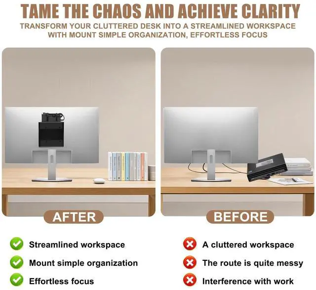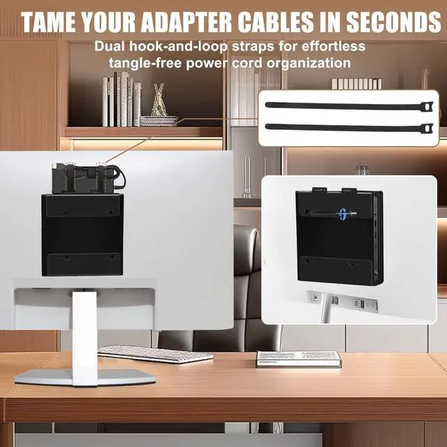 Performance: We understand the importance of heat dissipation in a mini PC. The bracket adopts a comprehensive double-layer hollow design - bottom plate + side plate, effectively increasing the ventilation area and promoting natural air convection, helping your HP Mini PC discharge heat more smoothly, providing an additional layer of protection for continuous and stable operation. Fine cable management, long-lasting