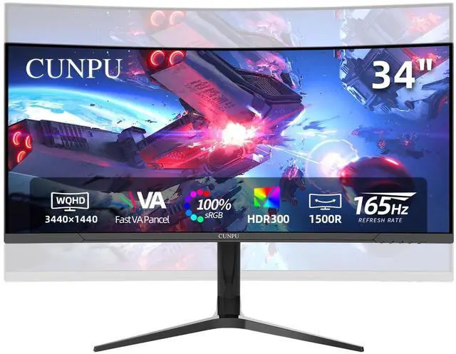 Ultra-wide monitor: CUNPU's 34-inch ultra wide monitor uses a 1500R golden curvature screen to provide an immersive visual wrap around experience for gaming enthusiasts. 21:9 ultra wide ratio increases the field of view by 30% compared to the traditional 16:9 screen, and the WQHD Ultra High Definition (Ultra HD) quality delivers even more detailed picture quality performance. ^^ Fast Response and