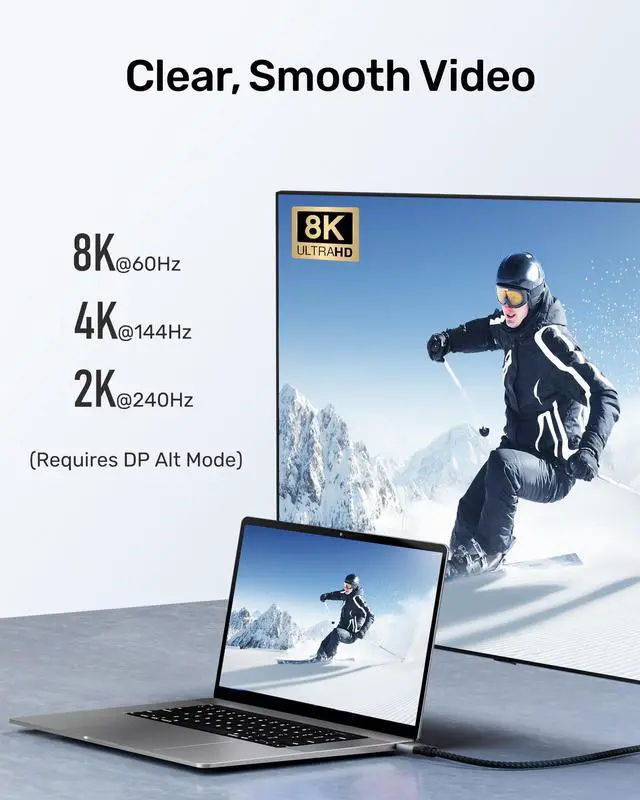 40Gbps Data TransferAGFINEST USB C to USB C Cable supports 40Gbps* high-speed transmission, allowing you to move photos, 4K videos, and large projects in seconds. (*Speeds vary by devices) ^^ 240W Fast ChargingWith PD 240W fast charging, this USB4 for Thunderbolt cable ensures your devices are charged quickly and efficiently. Say goodbye to long charging times and keep your devices powered up on the go. ^^ 8K@60Hz ResolutionExperience stunning 8K@60Hz or 4K@144Hz audio and video synchronization with this video cable. It's ideal for high-resolution displays and professional video editing. ^^ Multi-Screen ExpansionPerfect for professionals and gamers alike, this USB4 data cable supports multi-screen expansion.