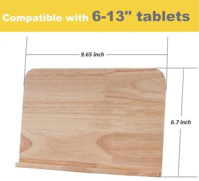 The MTWhirldy Wood tablet stands can free up your hands, multi-Angles for watching videos, drawing, browsing the web, video chatting and more. Working well with your devices in the office and home. ^^ Made of Natural wood Material - Rubberwood. Ergonomic design, Exquisite looking, full of the nature feeling. ^^ This iPad stand for desk is lightweight and portable, conveniently folding down when not in the using. ^^ Durable hard body ensures steady. Sturdy construction, Unique design, attractive wooden iPad stand. ^^ Universal compatible with iPad pro 12.9, iPad air mini, Samsung Galaxy Tab, Kindle Fire HD, Google Tablet and other 6-13 inch tablets or E-Reader.