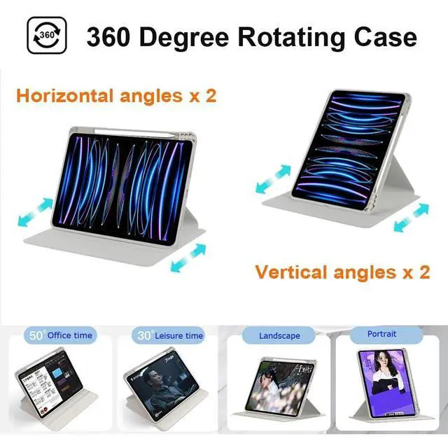 Case: 360 degree rotating structure provides flexible landscape mode and portrait mode stand. Four adjustable angles meet your needs of watching videos, wirting, typing, drawing, video calls, etc ^^