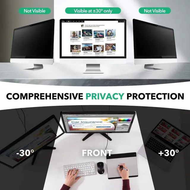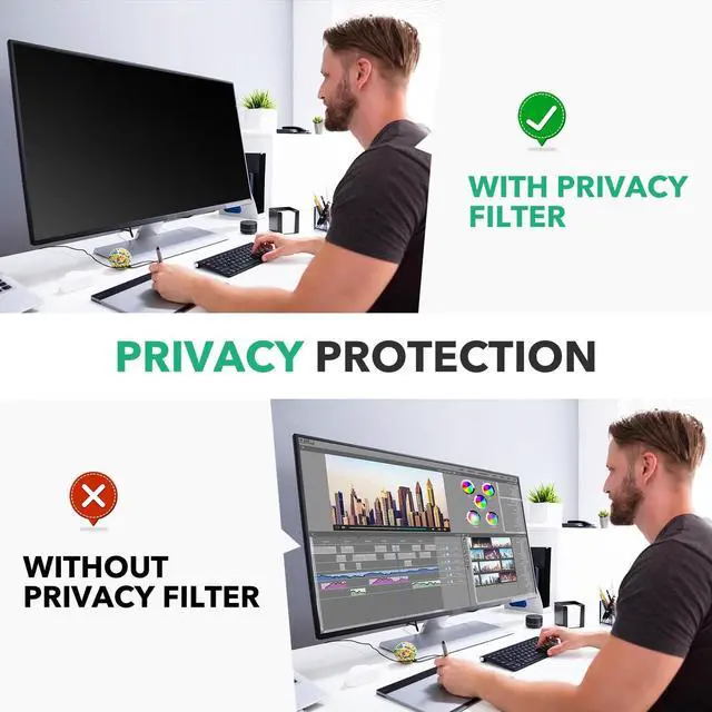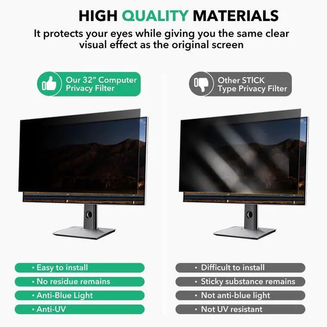 ^^ Enhanced Privacy Protection: With high advanced privacy protection technology, the 32 inch monitor computer privacy screen can make sure that only the front user can clearly see the screen content, and block visibility at around 30 degrees and black out screens completely near 60 degrees. effectively preventing others from peeping and protecting personal privacy from being violated. Great perfect for travel and open workspaces.