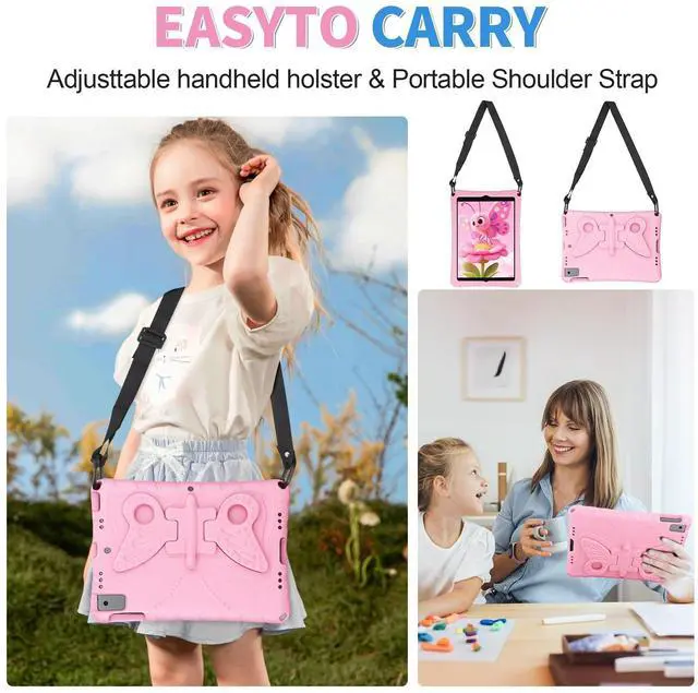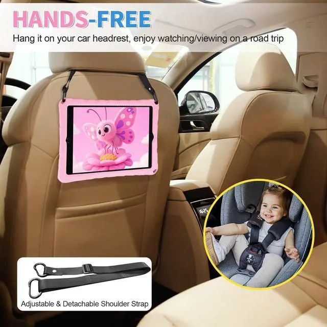 ADJUSTABLE SHOULDER STRAP: Portable shoulder strap provides a more flexible and convenient way to use the tablet during outside plying, study or journey, ideal for kids watching cartoon in the car, free hands and make more convenient in life! ^^