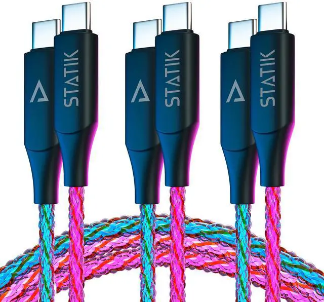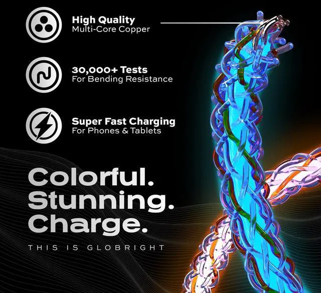 ^^: With its unique Multicolor LED lighting, the Statik Globright Braided light up USB C charging cable provides a vibrant and glowing charging experience. The light up phone charger cord glows when it is plugged in, providing a stylish and eye-catching addition to your workspace or bedroom.