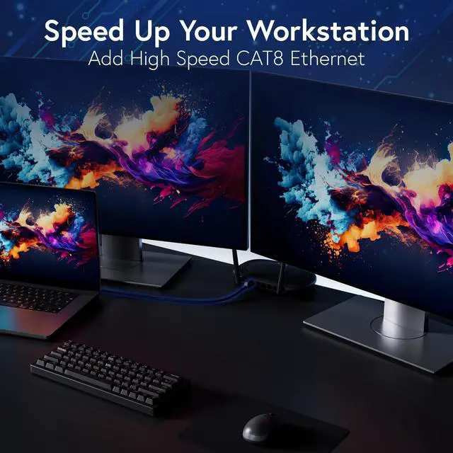 Maximum Bandwidth: As a true Cat 8 cable, it's purposefully thick and less flexible to support extreme data loads, making it perfect for high-bandwidth needs like pro gaming rigs, servers, or data-intensive workstations.