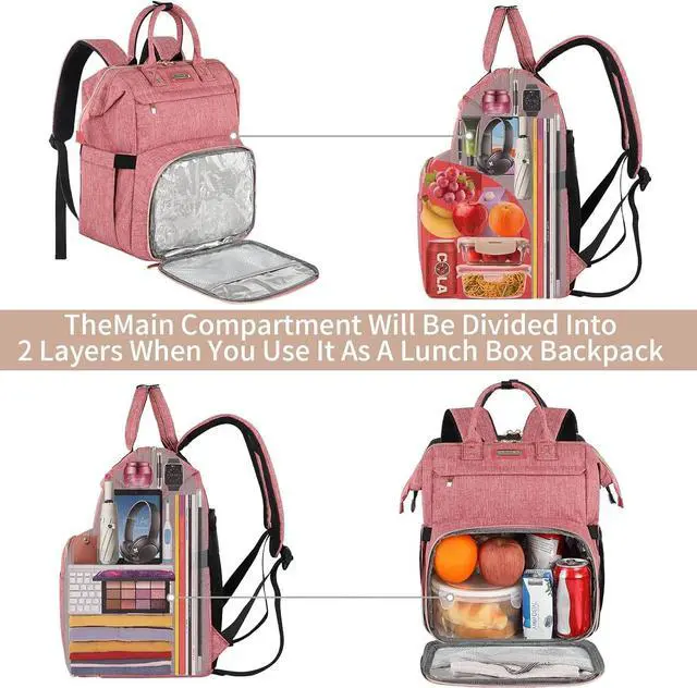 USB PORT: USB charging part of this college lunch backpack makes it easy to charge your phone while you're walking, convenient and practical, note not inclube power bank. Two side pockets of this college Laptop bag to hold umbrellas and water bottles, womens lunch bag's waterproof fabric protects Office&work supplies in this lunch bag backpack from getting wet ^^