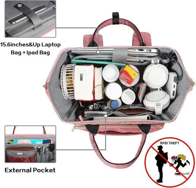 TOTE DESIGN&LAPTOP COMPARTMENT: Travel backpack lunch bag of one separate laptop compartment hold 15.6 Inch laptop as well as 15 Inch, 14 Inch and 13 Inch computer. The design of full opening of this college backpack is convenient to store items, the college tems inside are clear at a glance, you don't have to worry about not finding what you want in this womens laptop bag ^^ CONVENIENT