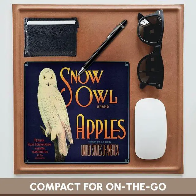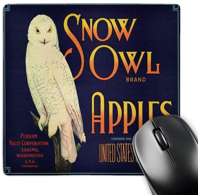 Snow Owl Brand Apples Washington with White Snow Owl on a Branch Mouse Pad is 8" x 8" x. 25" and is made of heavy-duty recycled rubber. Matte finish image will not fade or peel. Machine washable using a mild detergent and air dry.