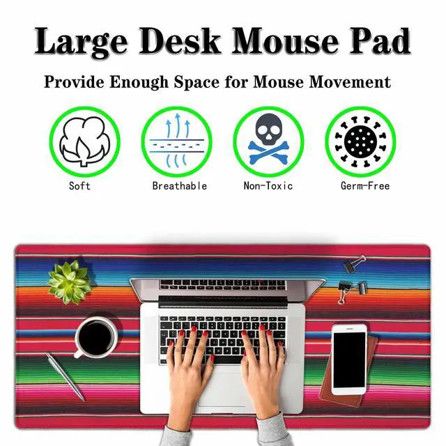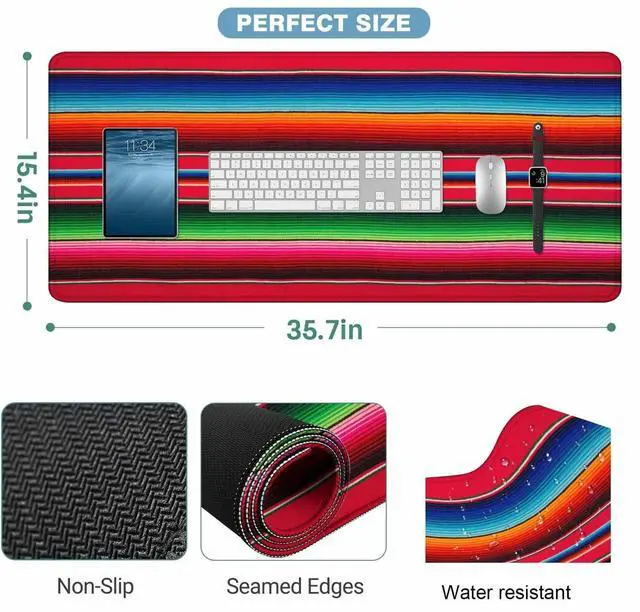Y YIHANGBEST Mexican Style Desk Mouse Pad Mat Traditional Colorful Stripes Line Extended Gaming Keyboard Mousepad for Computer,Home,Office 35.4"X15.7"