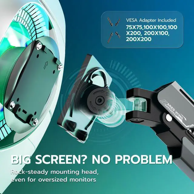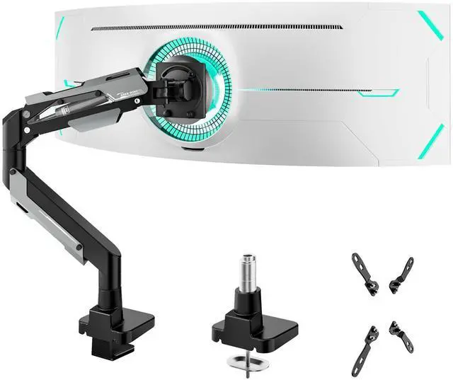 Ultrawide monitors (Note: Non-VESA displays require vesa adapter, it always comes with your monitor package) ^^ Upgraded Construction - Engineered with premium aluminum & steel arm and joints for ultimate stability, featuring an 20, 000-cycle tested gas spring system that reduce screen wobble during use. The 360 fully adjustable mechanism provides unprecedented positioning flexibility while maintaining rock-steady performance for long-term use. ^^ Full-Range Adjustable Monitor Arm Provides 70 tilt up/-45 tilt down, 90 swivel & 360 rotation with 22.4" height-adjustable gas spring system for ultimate positioning flexibility to achieve your perfect viewing angle. ^^ Quick & Easy Installation Offers dual