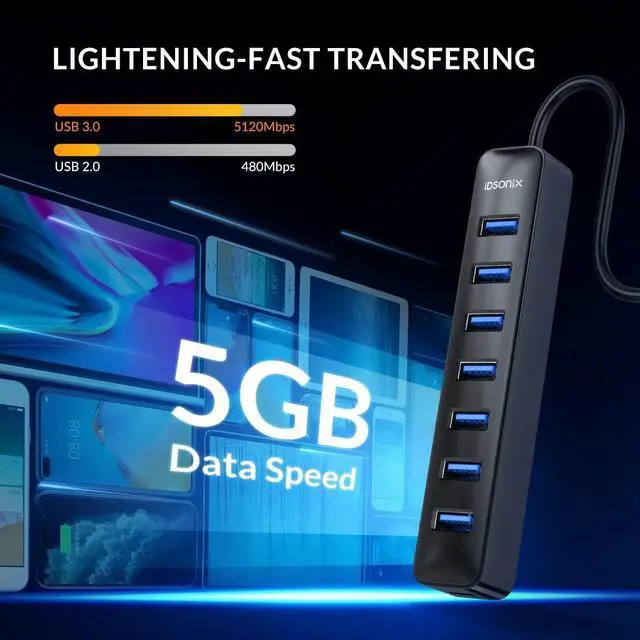 (Note: This usb hub not for charging devices because it support output Max Current only 900mA. Charging very slowly. ) ^^ High Speed TransmissionThe usb hub 3.0 sync data at blazing speeds up to 5Gbps, which is more than 10 times faster than USB 2.0, fast enough to transfer an HD movie in seconds. ^^ Excellent Technical DesignThe usb splitter hub Built-in advanced chip, avoid over-current, over-voltage, short circuit and high temperature, protect your valuable data. ^^ Widely CompatibilityThe usb extender hub multi port for Laptop, PC, Windows 10, 8, 7, Vista, XP, Mac OS x 10.6 - 10.12 or later, Linux 2.6. 14 or Later.