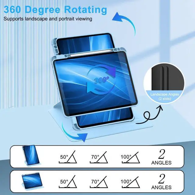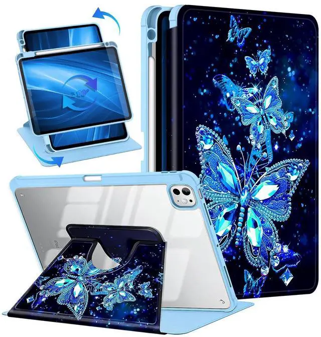 Note: The Stylus Pen is NOT included in the package. ^^ 360 Degree Rotating This case for iPad Pro 13 Inch (M4) can swivel both vertically and horizontally, non-slip lining material and grooves can set up multiple stand angles stably to reach your most comfortable viewing or typing. Functional and convenient. ^^ Auto Sleep/Wake CoverThis is designed for iPad Pro 13 Inch (M4) case automatically wakes or puts your tablet to sleep when the lid is opened and closed, protects and extends battery life. Easy access to all features and controls even with the case on. Precise cutouts, with all buttons and ports accessible. ^^ Unique Triple Shockproof Protection Compared with the outdated design, the unique iPad Pro 13 Inch (M4) Case designed with an add-on bumper made by high-performing impact material. Absorbs more shock energy between the tablet and the hard back case. choose this case to express delicacy and elegance of your life style. Upgrade built-in sponge technology adds extra heat-dissipation.
