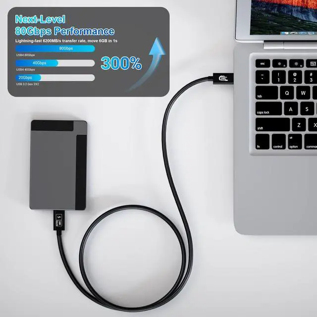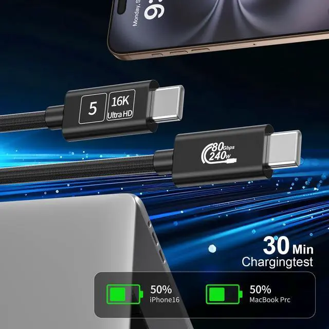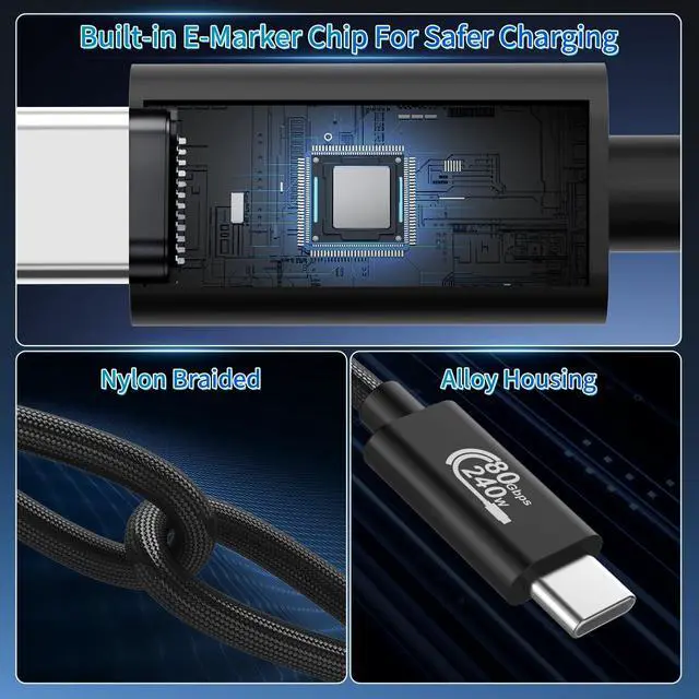 Unrivaled Speed and Efficiency Revolutionize your workflow with USB 5 technology, delivering bi-directional data transfer speeds of up to 80 Gbpsdouble the bandwidth of USB 4. Transfer large files like 4K/8K videos, 3D models, or massive datasets in seconds, not minutes. Ideal for professionals and tech enthusiasts who demand peak performance and productivity. This USB-C data cable is your ultimate tool for lightning-fast data transfers ^^ Dual 8K or Triple 16K Display Support Elevate your visual experience with support for dual 8K or triple 16K displays @144Hz. Perfect for graphic designers, video editors, and multimedia professionals who require stunning clarity, precise color accuracy, and razor-sharp detail for their creative projects.
