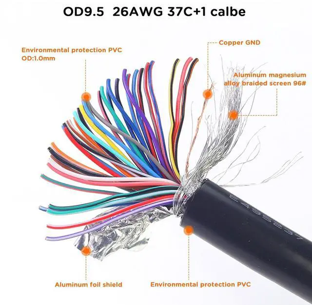 Shielded Cable: Tinned copper core 26AWG with aluminum Mylar shields, OD: 8.0 mm. ^^ Straight-through wiring (i. e. pin 1 to pin 1) design per industry standards ^^ DB37 extension cable Using PVC material for integrated injection molding DB37 male and female adapter, sturdy and durable