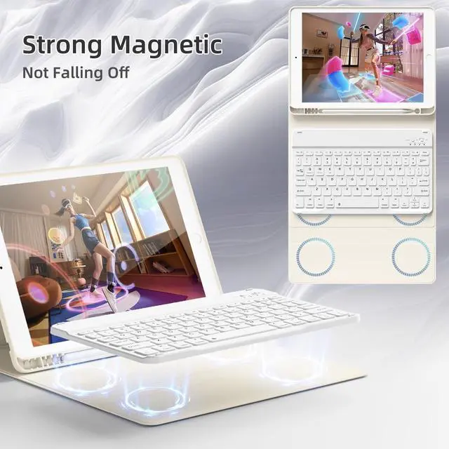 SQQSOOZ Keyboard Case for iPad 9th Generation 10.2 Inch 2021 with Pencil Holder, Soft TPU Back, Magnetic Detachable Wireles Folio Keyboard Stand Cover for iPad 9th/8th/7th Gen (Cream White)