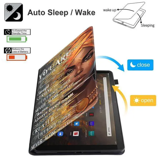 Auto Wake/Sleep: This case is built-in magnetic strip. It automatically wakes your tablet when opened and puts it to sleep when closed.