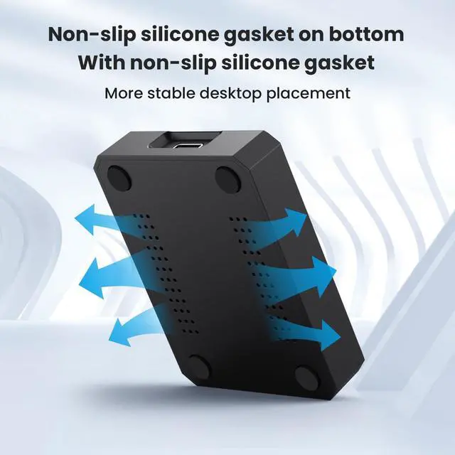 Reliable: The External NVMe M. 2 SSD Enclosure is made of ABS high-quality plastic material, simple structure, lightweight and portable, you can back up your data anytime, anywhere; the bottom is equipped with a silicone spacer, which ensures the desktop is more stable, and it is the first choice of M. 2 SSD data transfer backup ^^