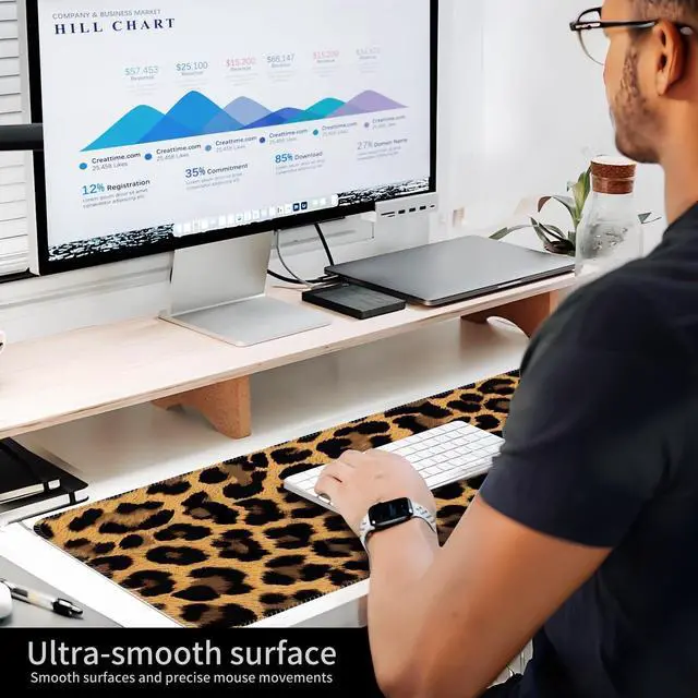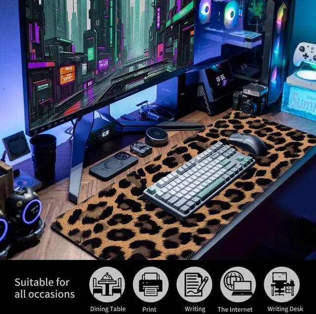 ALTEKO Large Gaming Mouse Pad, Computer Mouse Mat, Funny Desk Pad Protector Decoration, Big Cute Desk Pad, Non-Slip Base 31.5 x 11.8 in Brown Leopard
