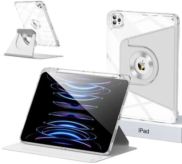 Rotating Case for iPad Air 11-inch M3 2025/M2 2024/ ipad Pro 11'' (1st/2nd/3rd/4th Gen), for ipad Air (4th/5th/6th/7th Gen) Case with Pencil Holder, Dechable ipad Case with Foldable Magnetic Stand, Auto Sleep/Wake, Slim Stand Hard Back Clear Shell Smart Cover