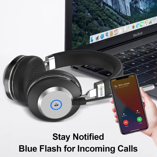 Volume Controls & Mute Function: Easily manage your calls with on-ear buttons for power, volume, and mute. Switch between devices or adjust audio without interrupting your workflow. ^^ Busy Light & Call