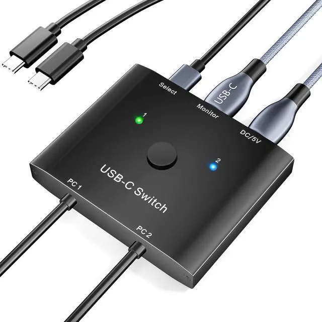 Please use USB-C USB 3.1 Gen-2 specification cables. When KVM Switch USB C is connected to a USB-C/Thunderbolt docking station/hub, some docking stations with poor compatibility may cause the screen to flicker or go black. Please use it with caution ^^ 2 Switch MethodsPlug and play, the indicator light shows the working status. The USB Type C switch supports two switching methods. The input source can be switched through the buttons on the USB C KVM panel and the 1.5 m wired remote ^^ Supports PD 100W Charging USB Type C KVM switch allows your laptop and other devices to be charged while working, supporting PD 100W charging efficiency.