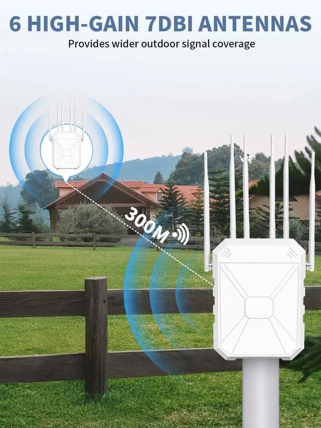 ^^ Flexible 3-in-1 Mode: Supports Repeater, Router, and AP modes to meet any network setup. Extend your existing WiFi, create a new outdoor network, or connect via Gigabit Ethernet for wired stability. Perfect for home entertainment, backyard streaming, surveillance systems, and large outdoor areas. ^^ Stable Connection in Any Weather Built for outdoor reliability, this WiFi extender features IP65 weatherproof protection, resistant to rain, dust, and extreme temperatures. Ideal for powering security cameras, smart lights, and Alexa devices, providing continuous, uninterrupted WiFi in all conditions. ^^ Enhance Your Outdoor Life & Productivity: Enjoy seamless WiFi for work and play outdoors. Perfect for BBQ parties, poolside entertainment, backyard movies, farm monitoring, garage workshops, or RV trips. Experience faster streaming, lag-free gaming, and stable connections for all smart devices, making your outdoor life more convenient and enjoyable. ^^ No technical skills requiredThis outdoor access point Supports 24V DC adapter or PoE (Power over Ethernet) for hassle-free deployment. Use included 12V adapter. Vertical/horizontal mount in 5 mins. Compatible with 99% of routers, supports dual-band 2.4GH z & 5GHz, and ensures every devicelaptops, tablets, smart TVs, camerasstays reliably connected.