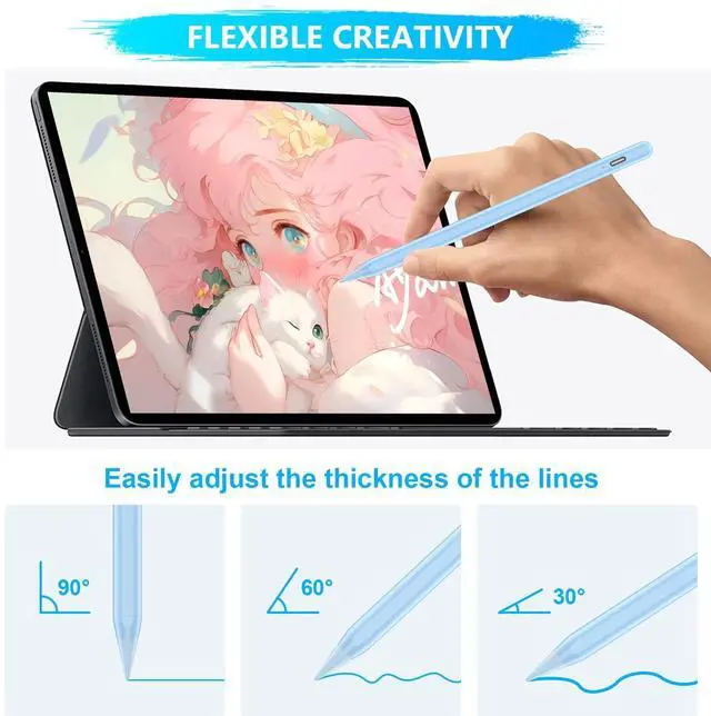 Palm Rejection Design: This Stylus Pen for iPad a16 supports palm rejection, allowing for free writing like traditional pencils, without jumping or lagging. Tilt pressure sensitive design technology changes the size of the pen by tilting it at different angles, allowing for easy line thickness adjustments while drawing, sketching, or marking ^^ With