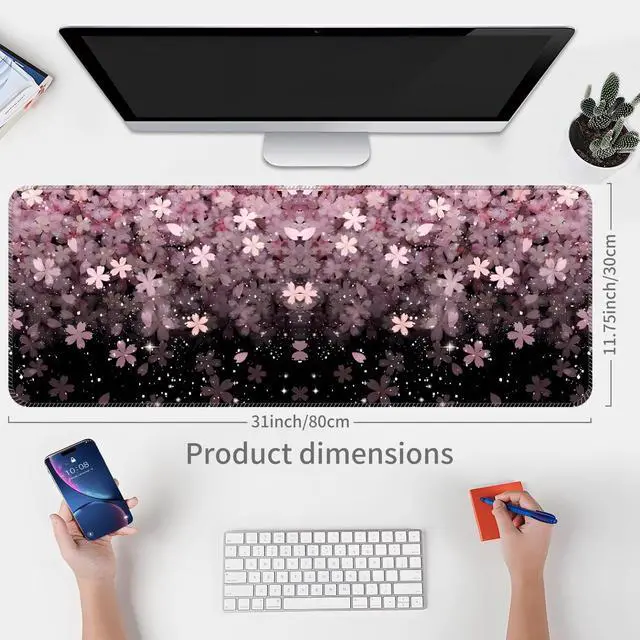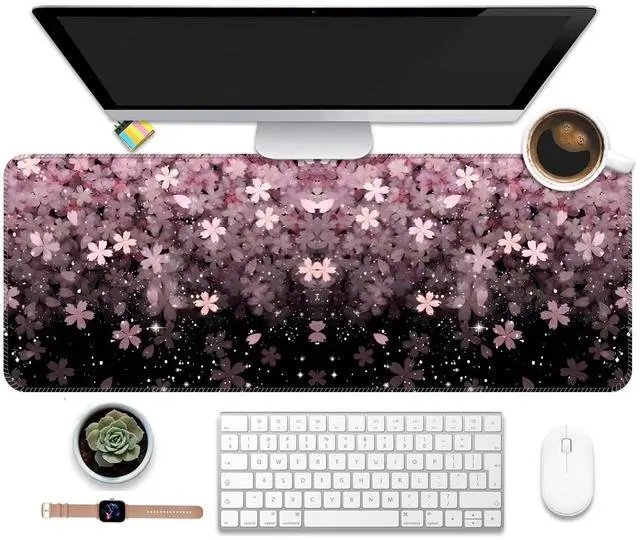 ALTEKO Large Gaming Mouse Pad, Computer Mouse Mat, Funny Desk Pad Protector Decoration, Big Cute Desk Pad, Non-Slip Base 31.5 x 11.8 in Black Pink Flower