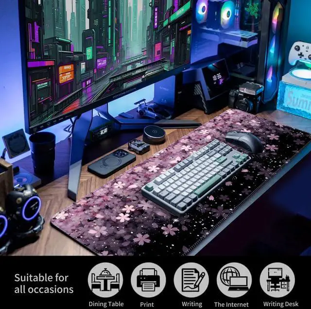Durable, Precision-Engineered SurfaceCrafted with a fine-textured fabric, this computer mouse pad offers the ideal balance between smooth glide and superior control. Its specifically designed to enhance mouse tracking, providing exceptional precision for both optical and laser sensors. Whether youre gaming or working, the surface ensures your movements are reflected with remarkable accuracy, making it a great choice for anyone seeking a desk mat for desktop use. Plus, the material is highly durable, reducing wear over time and preventing the common fraying issues seen with lower-quality mouse pads. Non-Slip Base for Stability and ProtectionNo more worrying about your mouse pad shifting mid-game! This large mouse pad features a soft, dense non-slip rubber base that keeps the desk pad securely in place.