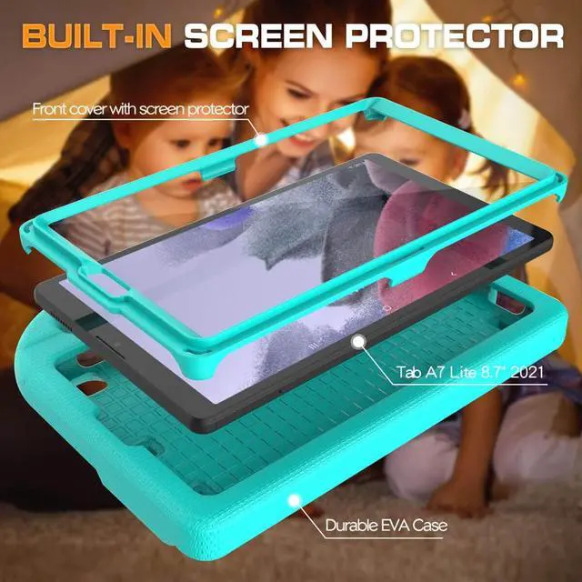 Model: SM-T220/SM-T225/SM-T227 ^^ EVA Material- Samsung Galaxy Tab A7 Lite 8.7 tablet case for kids is made of non-toxic flexible and shock-resistant eva material, a durable friendly and protective case for kids ^^ Protective Case- Samsung Tab A7 Lite 8.7 inch 2021 case with built-in crystal-clear screen protector, completely covers your tablet, protects your tablet from scratches and dust ^^ Precise Openings- Samsung Galaxy Tab A7 Lite 2021 kids case has accurate openings for tablet, gives easy access to all buttons, speakers, cameras ^^ Fuctional Design- Built-in kickstand and handle, makes your iPad with multi-angle watching, and easily carrys for children