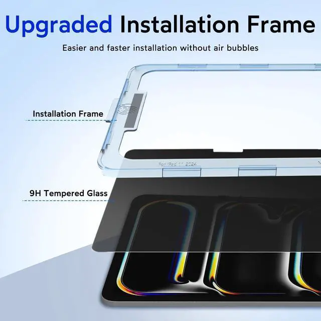Easy Application: With innovative installation frame, perfect 11 inch iPad pro screen protector applying is a breeze. Installation steps are convenient and quick, it is easy to achieve no bubbles, so that you have no trouble in the installation process