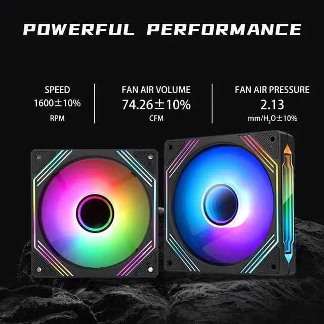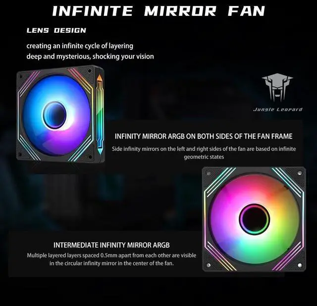 ^^ Dynamic ARGB Sync: Equipped with ARGB lighting, both the fan blades and infinity mirrors feature lighting effects. Whose lighting effects can be controlled via the motherboard, capable of creating various cool effects such as rainbow mode, breathing mode, and more.