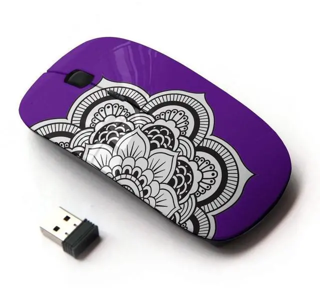 Graphic4You Mandala Flower (Purple) Ergonomic Wireless Mouse with Nano Receiver
