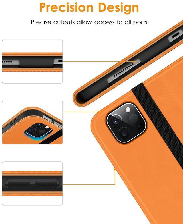 DTTO Case for iPad Pro 11 Inch 4th / 3rd / 2nd / 1st Generation 2022/2021/2020/2018,Premium PU Leather Folio Stand Cover with Hand Strap, Auto Wake/Sleep,Multiple Viewing Angles, Orange
