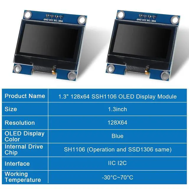 LinePackage Included: 4* 1.3" IIC I2C Serial 128x64 SSH1106 OLED LCD Display LCD Module