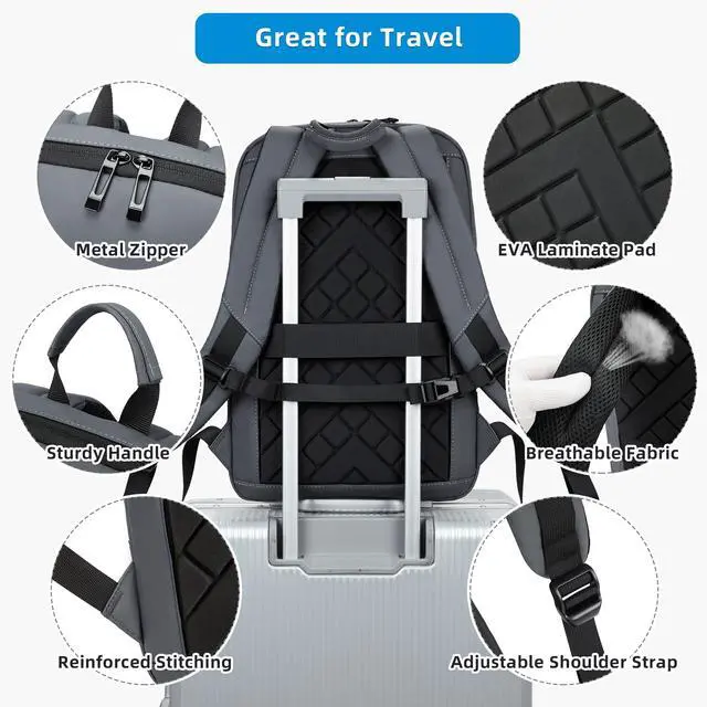 The padded division laptop/iPad compartment can 180opening which can hold 15.6 inch tablet and the different size iPad. The front pocket can place small items, such as wallet, pen, convenient sign, etc. The roomy capacity of the male bag can meet your daily needs ^^ Considerate DesignA luggage strap on the back of the the casual daypack helps to free your hand, making your journey more convenient wherever you go. Perfect choice as working business backpack, travelling rucksack, college bookbags for men and women. Nice choice for men, father, husband, boyfriend, and son