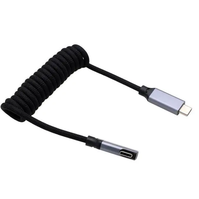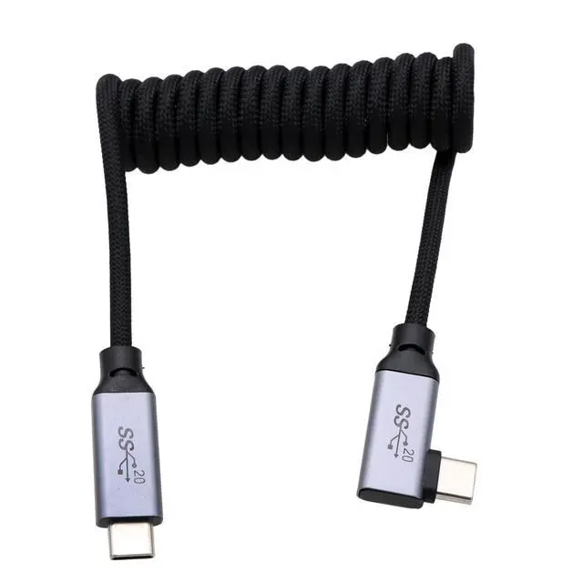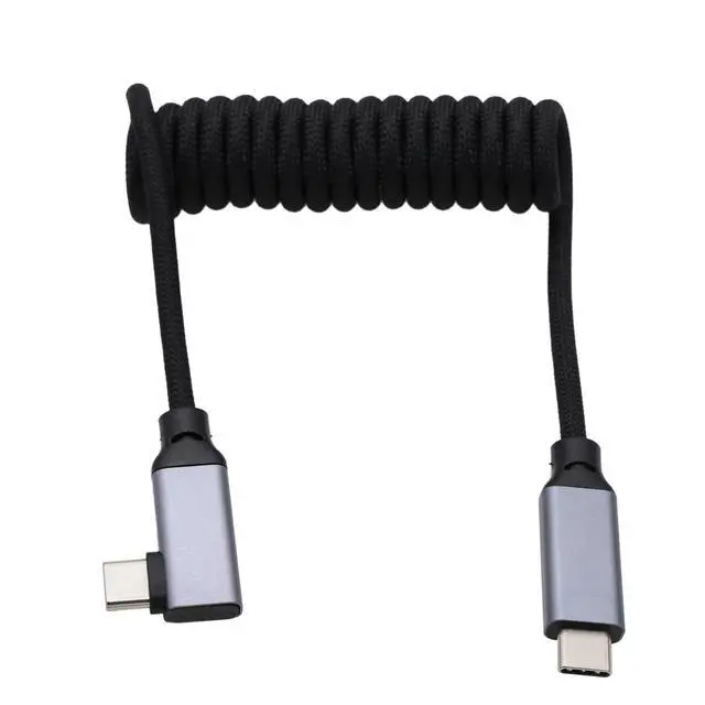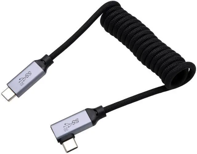 HangTon USB Type C PD 100W 4K Fast Speed Cable for SSD Blackmagic ZCAM R5C R6II Sony A7S3 FX30 Camera iPhone 15 Pro Max Monitor, Right Angle Black Braided Coiled 30cm