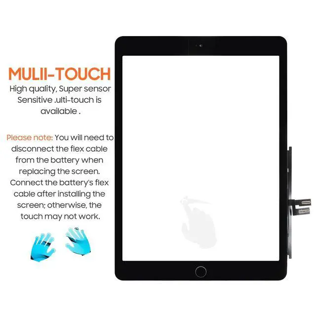 YouTube: "For iPad 7 7th/ 8 8th Gen A2197 A2198 A2200 A2270 A2428 A2429 A2430 10.2 inches Touch Screen Replacement". Videos are easier to understand than paper instructions. If you don't find the right installation instructions, you can always contact us. We will help you to solve the problem. Screen installation requires professional maintenance experience. If you do not have professional repair experience, please buy with caution! We are not responsible for any damage to the screen or device caused by installation errors! Always disconnect the flex cable from the battery before installing the screen. Wait until the screen's flex cable is connected before connecting the battery's flex cable, otherwise the touch function may be abnormal or unusable. You need to perform a screen test before installing the screen. Please do not remove any protective film or label during the test.
