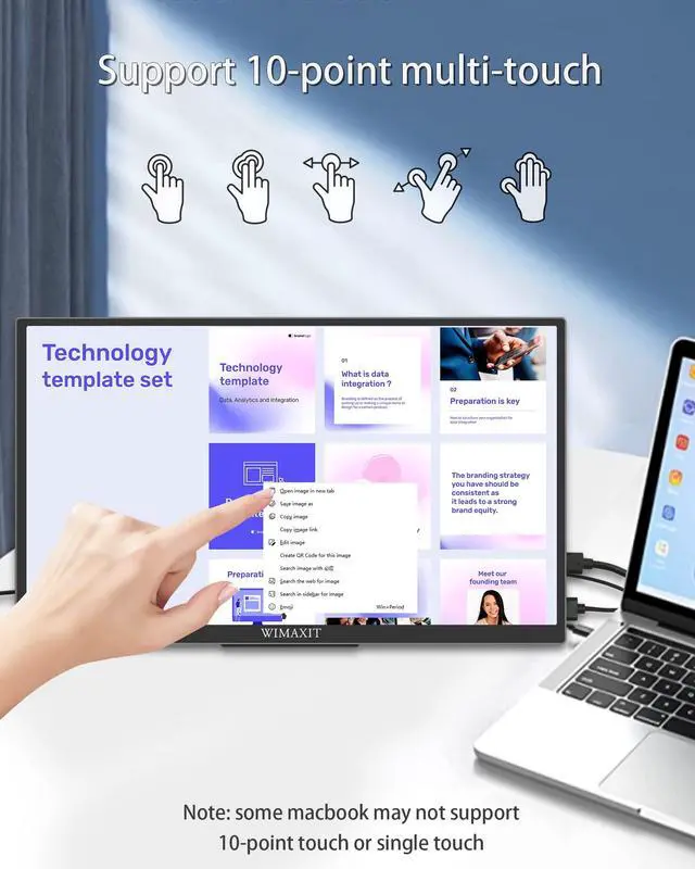 Portable Monitor]: WIMAXIT USB-C portable monitor with 14" IPS screen and Full HD 1080P (1920x1080) resolution that can act as a secondary screen for your portable devices. The screen kick stand is adjustable and extends the full length of the screen, making it very stable and won't tip over ^^ [Touch