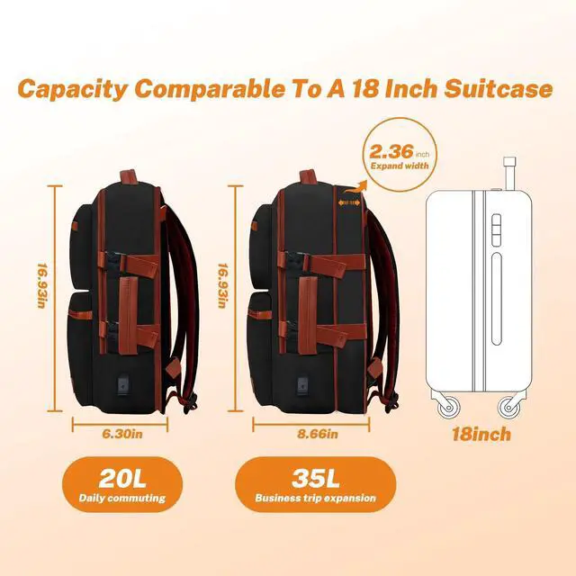 Expandable Laptop Backpack Women: This travel backpack for men can be expanded from 20L to 35L. With a side zipper layer design, you can easily pull it to increase the storage space. The backpack with laptop compartment features a large-capacity main pocket and two front zipper pockets, which can hold everything you need. Owning this travel bag means owning the whole world ^^ Breathable Shoulder Strap Laptop Backpack for