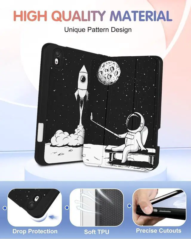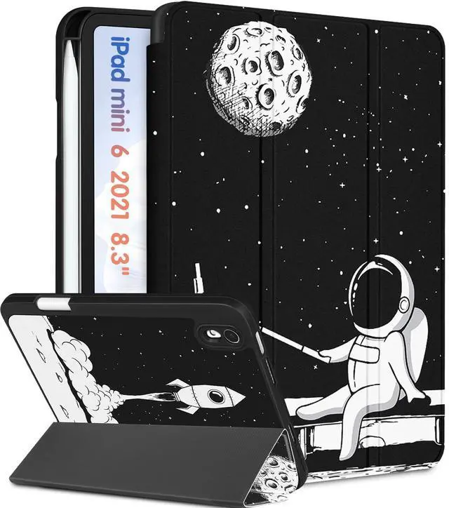 Wazzasoft for iPad mini 7 Case - for iPad mini 6th/7th Generation Cases Women Girls Cute Folio Cover Boys Astronaut Design Unique Pencil Holder for Apple Mini 6 2021/Mini 7 A17 Pro 2024 Case 8.3 Inch