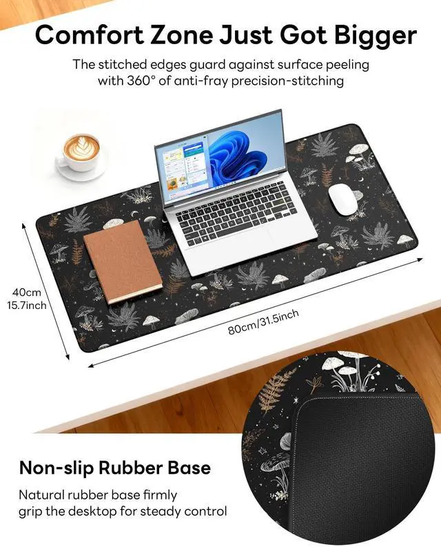 • Large Mouse Pad for Desk: The gaming mat measures 31.5 x 15.7 inch, it provides a plenty of space for your mouse to move around, and large enough to hold a gaming mouse, full-size mechanical keyboard, and other desk items