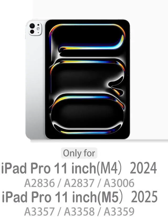 Number: A3357/A3358/A3359), iPad Pro 11 inch (M4) 5th Generation 2024 (A2836/A2837) Only. Precise cut-out provides our users full access to Touch ID, Cameras, and Ports. Not compatible with any other previous version of iPad Pro. Corner ProtectionThe powerful magnetic attachment ensures a secure connection between your iPad Pro 11 Inch M5/M4 and the back folio cover. With upgraded armored corners and a magnetic clasp, your device is protected from shocks or drops. Y-Fold Standing & Auto sleep/wakeEngineered with a flexible Y-fold Origami Standing, the cover adjusts seamlessly between portrait and landscape modes, while the smart lid with magnetic closure keeps your iPad Pro 11 M5/M4 secure and energy-efficient. Support Pencil ProWith Magnetic clasp, Your Pencil Pro can magnetically attaches to the side of iPad Pro 11 for secure storage and wireless charging.